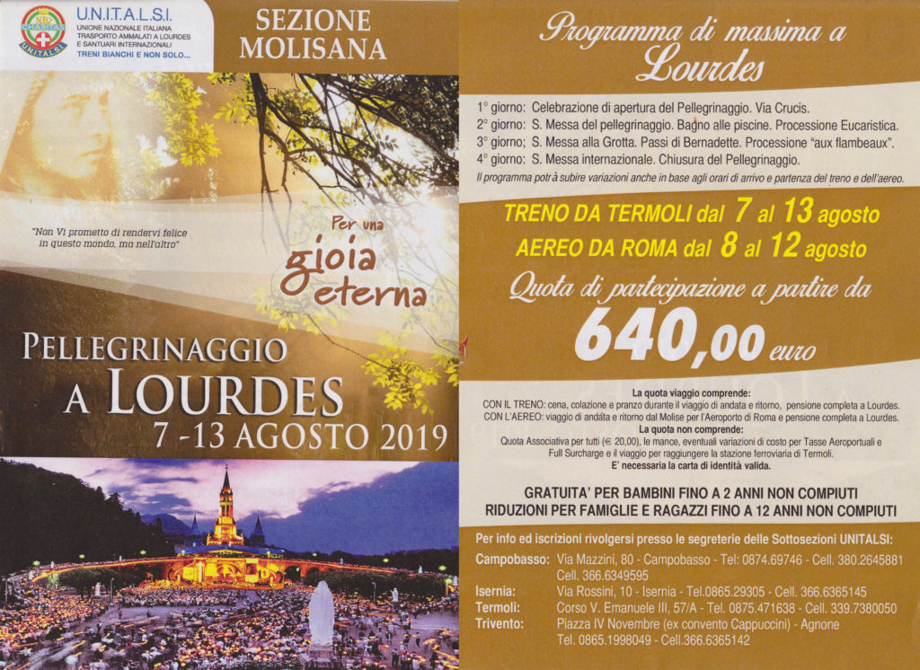 Pellegrinaggio Lourdes 7-13 Agosto 2019